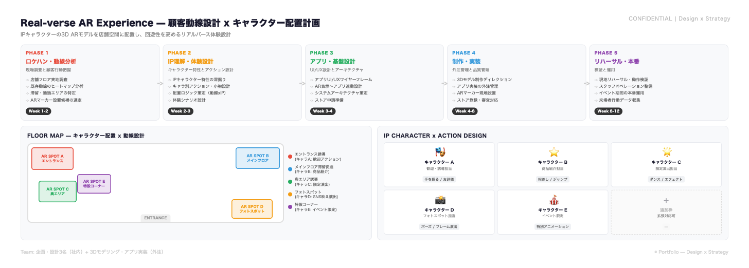 リアルバースAR体験設計 — IPキャラクター3D AR × 店舗空間の回遊デザイン